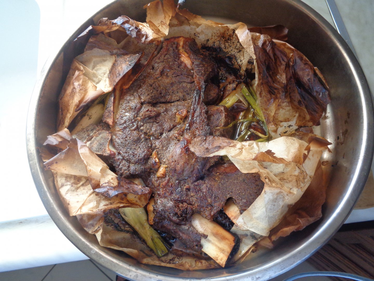 σα να σου ρπαξε ...Μπριζόλα Tomahawk μαριναρισμένη επί 24 ώρες και ψημένη σε λαδόχαρτο στον πετρόφουρνο...