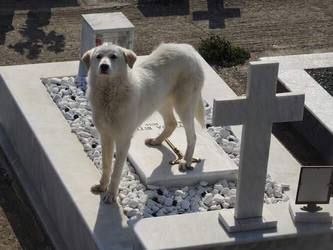 Ο σκυλος είναι ο πιο πιστός μας φίλος.Η κούκλα των φωτογραφιών ζούσε με το αφεντικό της μέχρι που εκείνος απεβίωσε πριν από περίπου δυο μήνες.Εκτοτε τον συντροφεύει στο νεκροταφείο όπου και περιμένει !Ειναι θηλυκο,περίπου δυο ετών ,φιλικό αλλά πολύ στενοχωρημένο.Την ταΐζουν μέλος του σωματείου όμως δεν αξίζει να ξαναβρεί την στοργή και να κάνει μια νέα αρχή;Τις επόμενες μέρες θα στειρωθεί με το προγραμμα διαχείρισης αδέσποτων του δήμου Αρταίων και ελπίζουμε να βρει την αγάπη που της αξίζει!