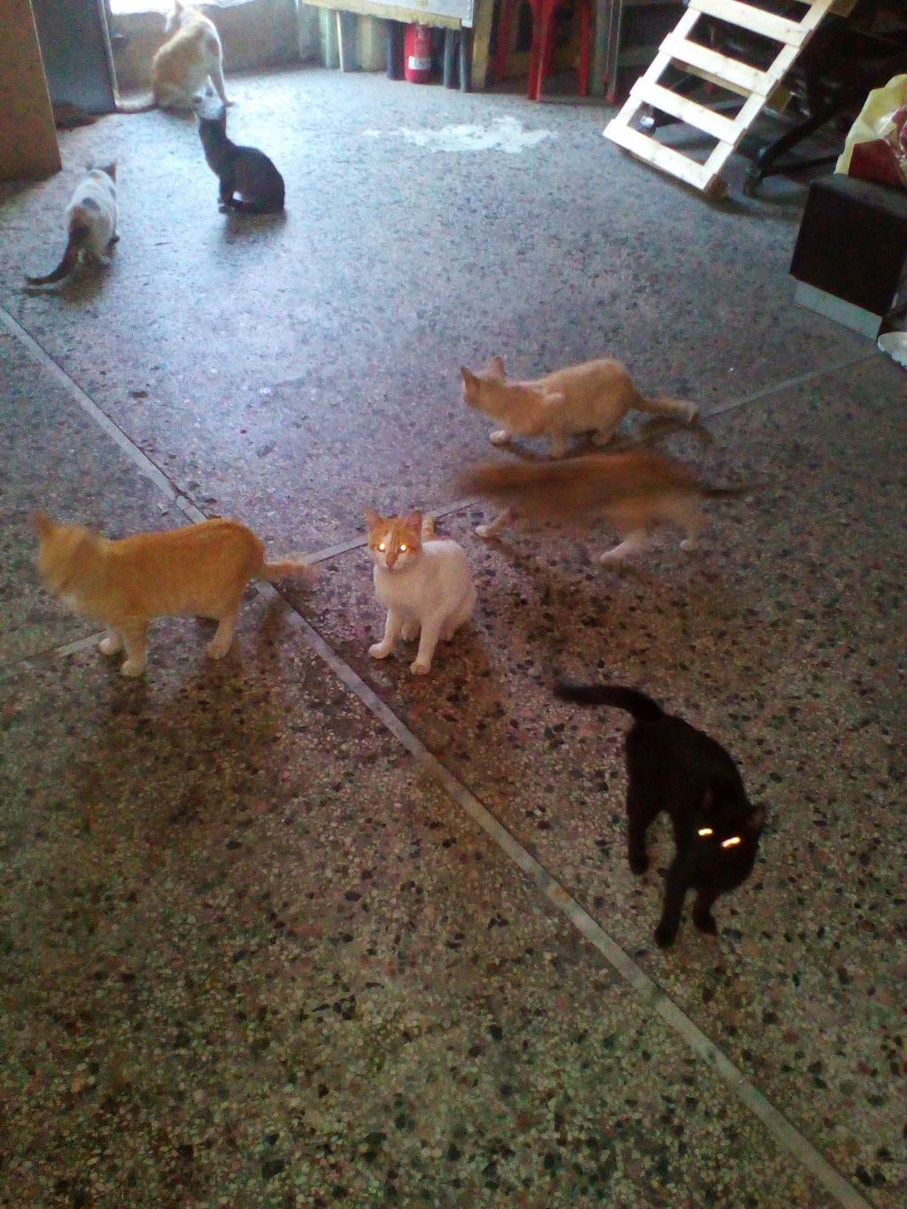 Και σήμερα πριν λίγο ενώ τις τάϊζα, ήρθε και μου διαμαρτυρήθηκε ένας γείτονας και είπε ότι μαζεύω τις γάτες και τις καλομαθαίνω και έχει γίνει η γειτονιά "γατομαχαλάς" όπως μου το είπε χαρακτηριστικά και ότι εγώ έχω γίνει γατομαμή.