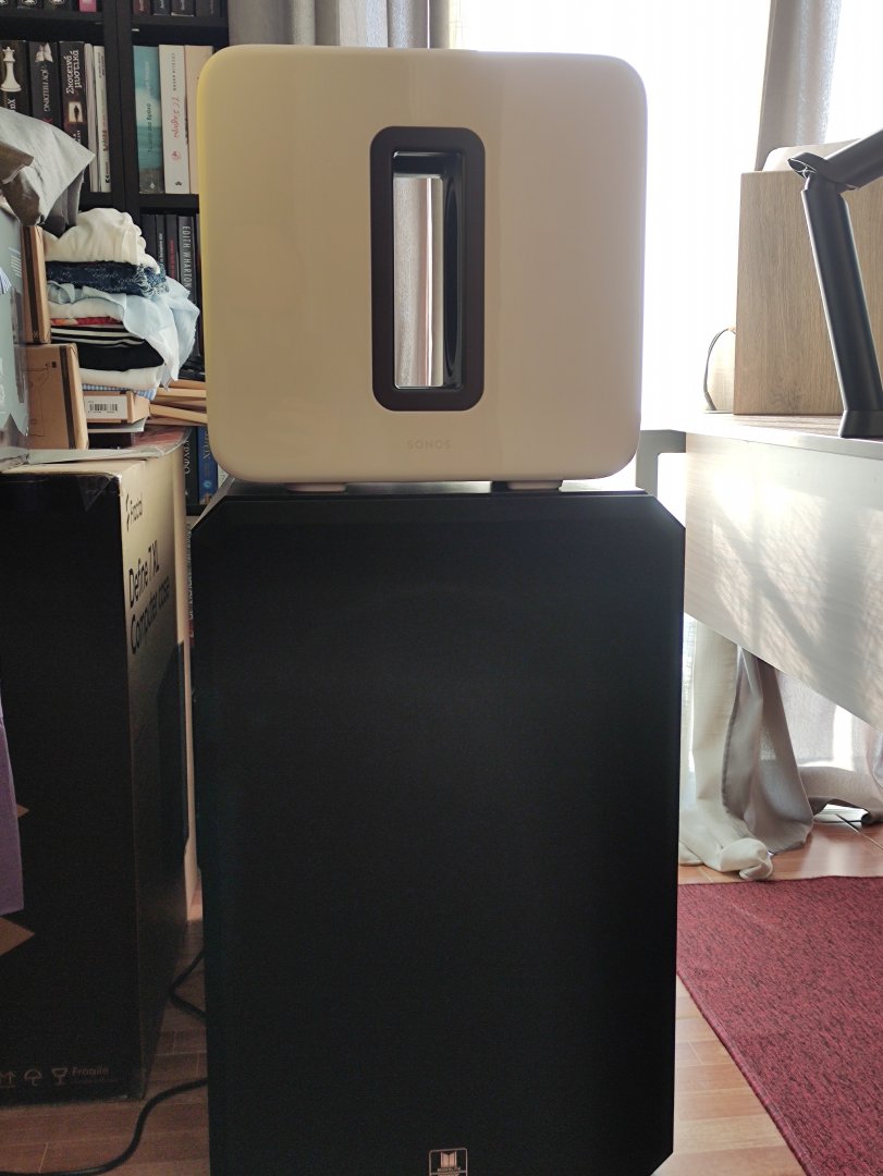 Το σαμπ είναι τεράστιο και σε συνδιασμό με το βάρος του καθιστούν πολύ δύσκολα τα πηγαινε-ελα (σαμπγουφερ κροουλινγκ). Τις διαστάσεις τις ήξερα αλλά ρε παιδί μου όταν το είδα σκιάχτηκα ! Δεν έχω προλάβει να παίξω πολύ γιατί έχουν προκύψει διαφορα, αλλά σε σχέση με το 2000 που είχα πριν ή το στουντιακό 310 της jbl υπάρχει πολύ μεγαλύτερο χεντρουμ.