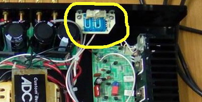 Αρχικά καταργήθηκε ο επιλογέας τάσης (παρέμεινε στο σασί για να μην υπάρχουν τρύπες) και τα καλώδια προς τους μετασχηματιστές κολλήθηκαν απευθείας επάνω στην ασφάλεια.