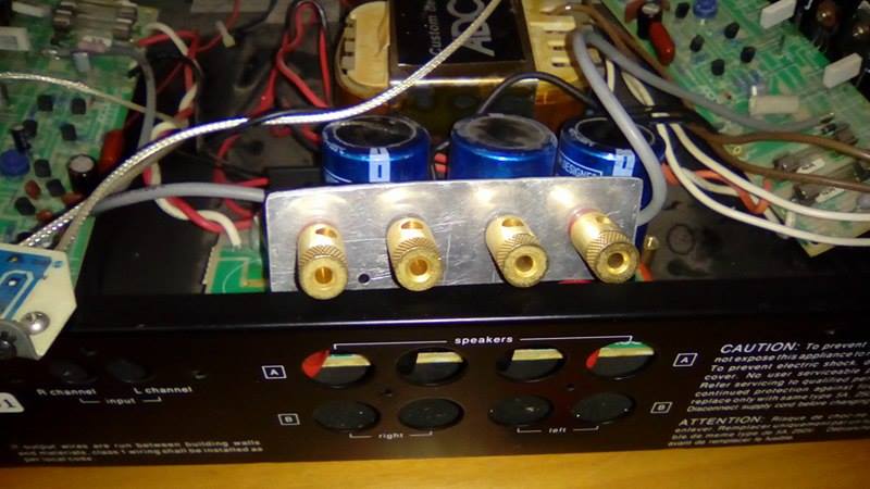 Επιπλέον, το καλώδιο από την έξοδο του ενισχυτή προς αυτές άλλαξε με επάργυρο Van Den Hull (το γκρι που διακρίνεται) και στερεώθηκε απευθείας στην έξοδο του ενισχυτή, καταργώντας τον επιλογέα ηχείων Α-Β.