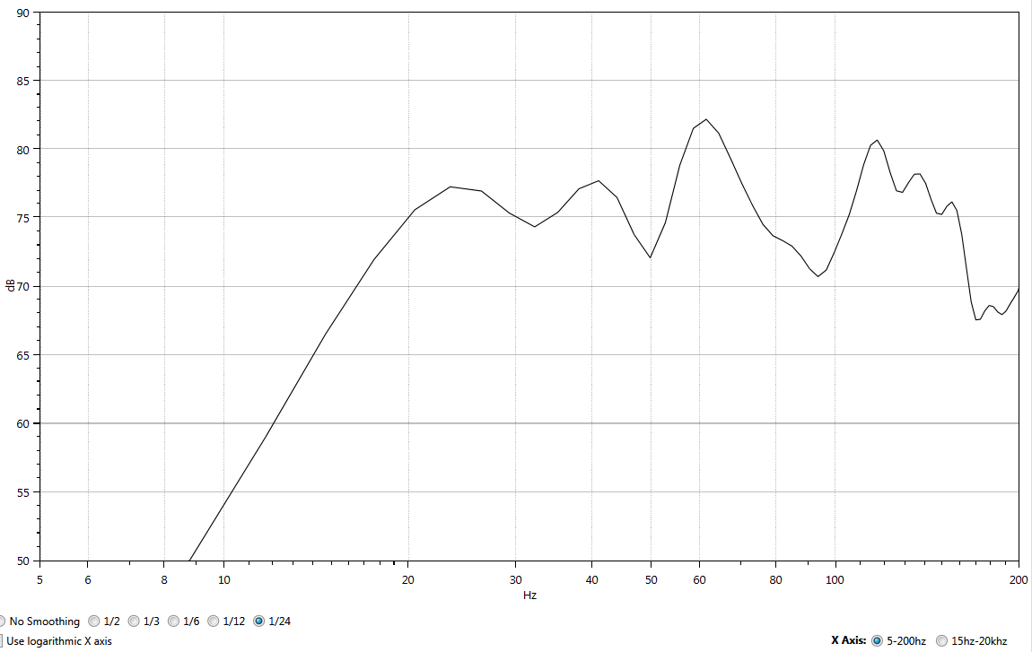 Εκανα τρεις ισοσταθμίσεις, μία με μόνο το αριστερό υπογούφερ, μία μόνο με το δεξί και μία με τα δύο, τι φωτό θέλεις Κώστα ποια θέση και με τι smoothing; Για αρχή τα βάζω εδώ με 1/24 μόνο θέση ακρόασης αλλά όλες το ίδιο ήταν πάνω κάτω και μία λεπτομέρεια, στην εφαρμογή έλεγε για κάθε επόμενη θέση μέτρησης να τοποθετείται το μικρόφωνο όχι πάνω από 60cm.