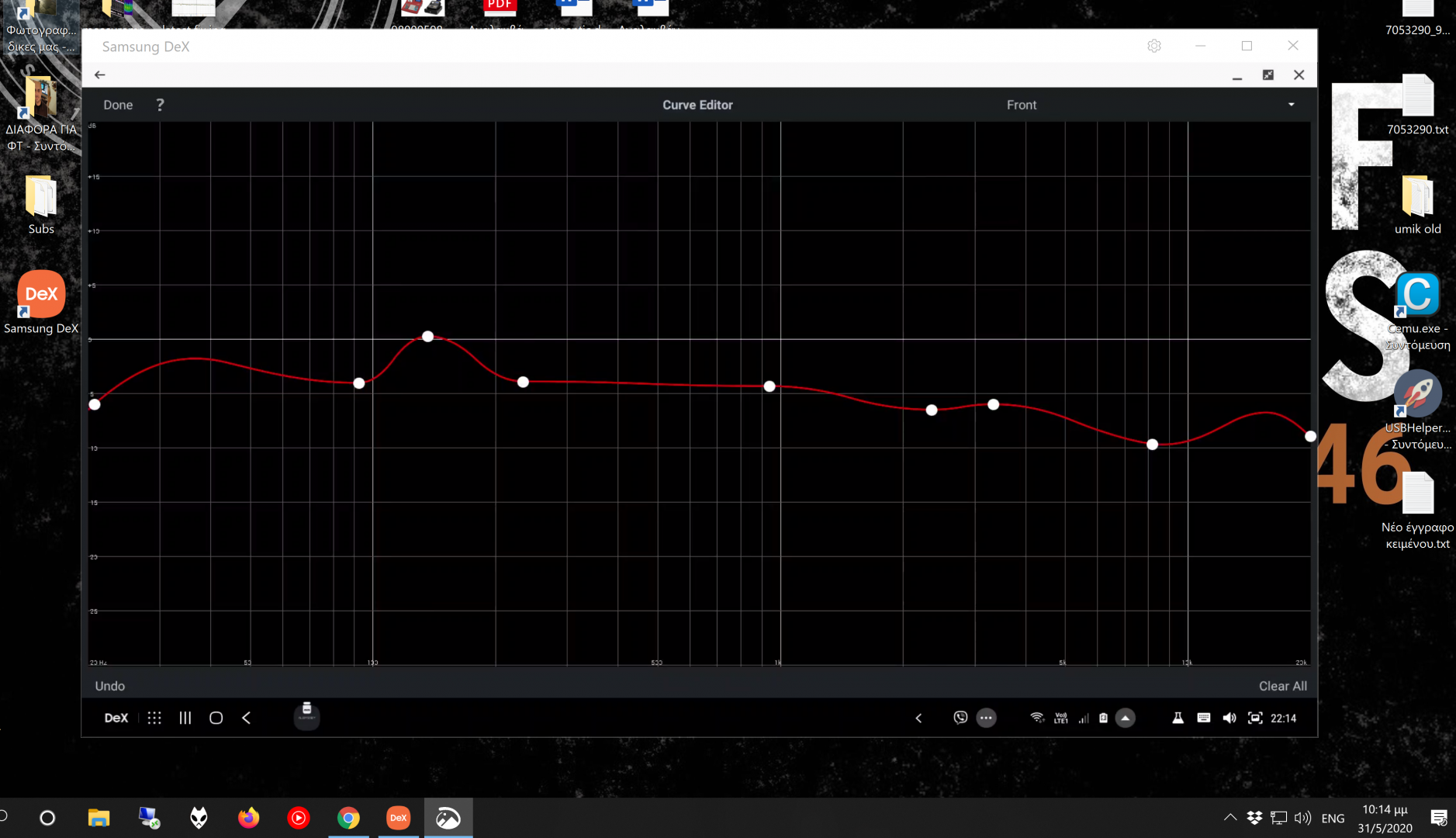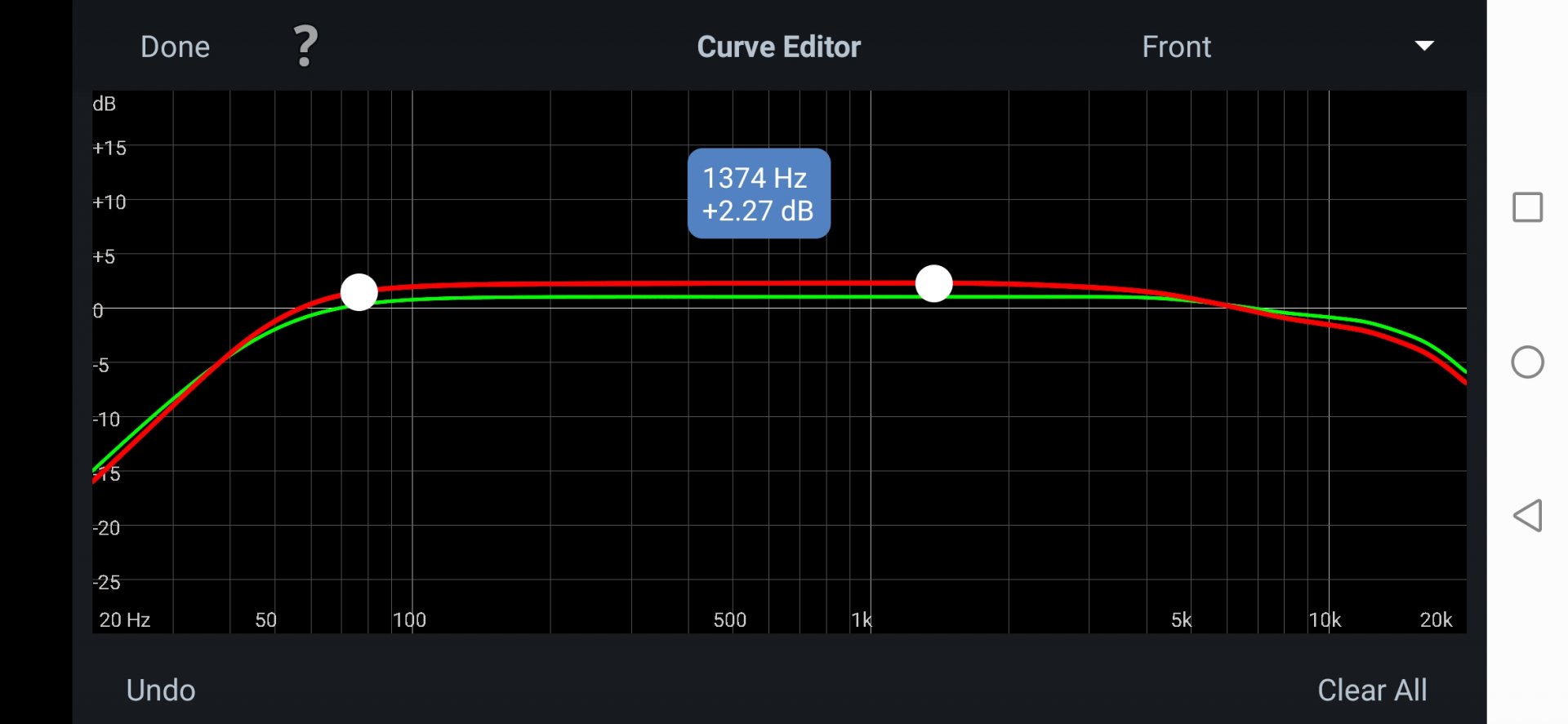 εμένα μετά την ισοστάθμιση ο ήχος είχε μία αίσθηση σκληράδας, έπιασα λοιπόν μία τελεία στα 20khz και την κατέβασα 2db, αυτό ουσιαστικά κατέβασε όλη την κόκκινη γραμμή μέχρι και το 1khz, τ