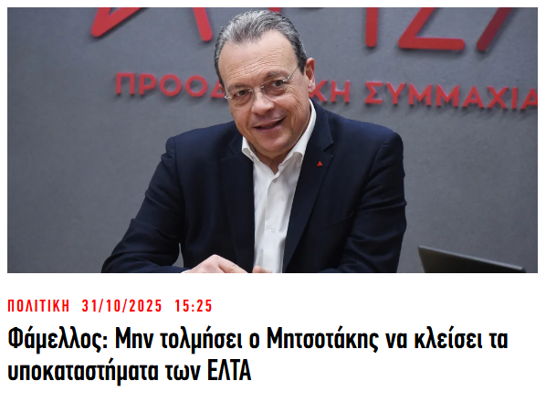 ΥΓ. Το τι ισχυρίζοντα τα ΕΛΤΑ για το κλείσιμο το διάβασα, δεν περίμενα ότι θα λένε και κάτι διαφορετικό όμως! Με τέτοιους ισχυρισμούς έχουν κλείσει και όλα σχεδόν τα καταστημάτα τραπεζών σε αυτές τις περιοχές, ένα σωρό άλλες υπηρεσίες, πλήρης αποψίλωση της υπαίθρου που "υπάρχει προβληματισμός για την ερήμωσή της" κατά τα άλλα. :rolleyes: