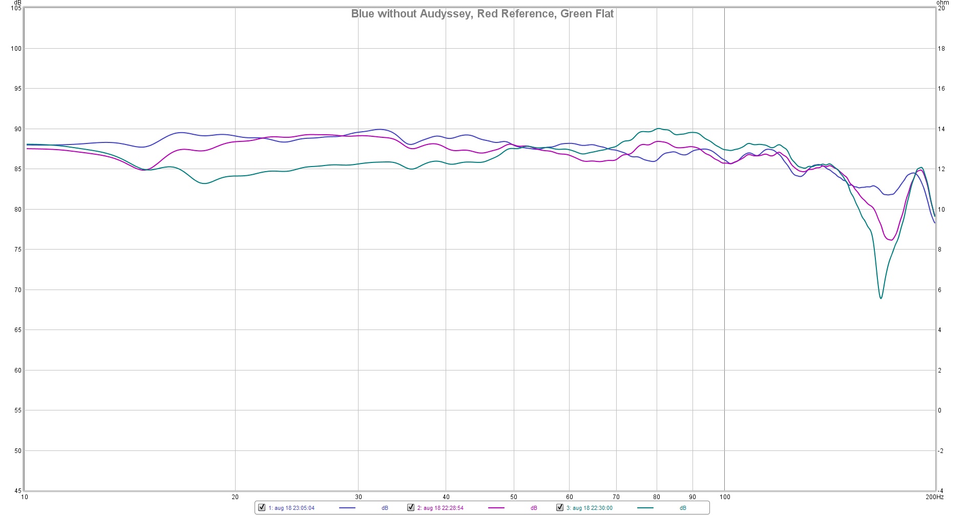 Το γράφημα είναι με 4 sub και mini dsp η μία καμπυλη και 2 καμπύλες με audyssey.