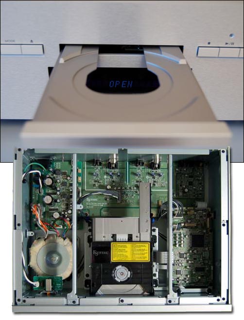Internally, Esoteric has isolated the different sections -- analog, power and digital -- to keep interference and vibration to an absolute minimum. After the data leave the transport, they encounter a pair of Cirrus Logic CS4398 DACs, and then a dual-mono analog output stage. You can connect the SA-10 via single-ended or balanced outputs. However, in its case, the output levels are the same -- 2.2V. A fully balanced circuit normally has double the voltage of a single-ended one, but in the case of the SA-10 the balanced output voltage has been cut in half at the first gain stage. Thus, when the balanced output is summed, it is only 2.2V, the same as the single-ended. Why did Esoteric do this? My only guess would be out of concern for overloading certain preamps with the greater balanced voltage. I did try both single-ended and balanced connections, and I preferred balanced for their greater clarity. The SA-10 doesn't perform DSD-to-PCM conversion, as earlier Esoteric digital players have. Each format is kept native right up to the analog output stage. As you may have already gathered, the SA-10 supports CD and SACD only.