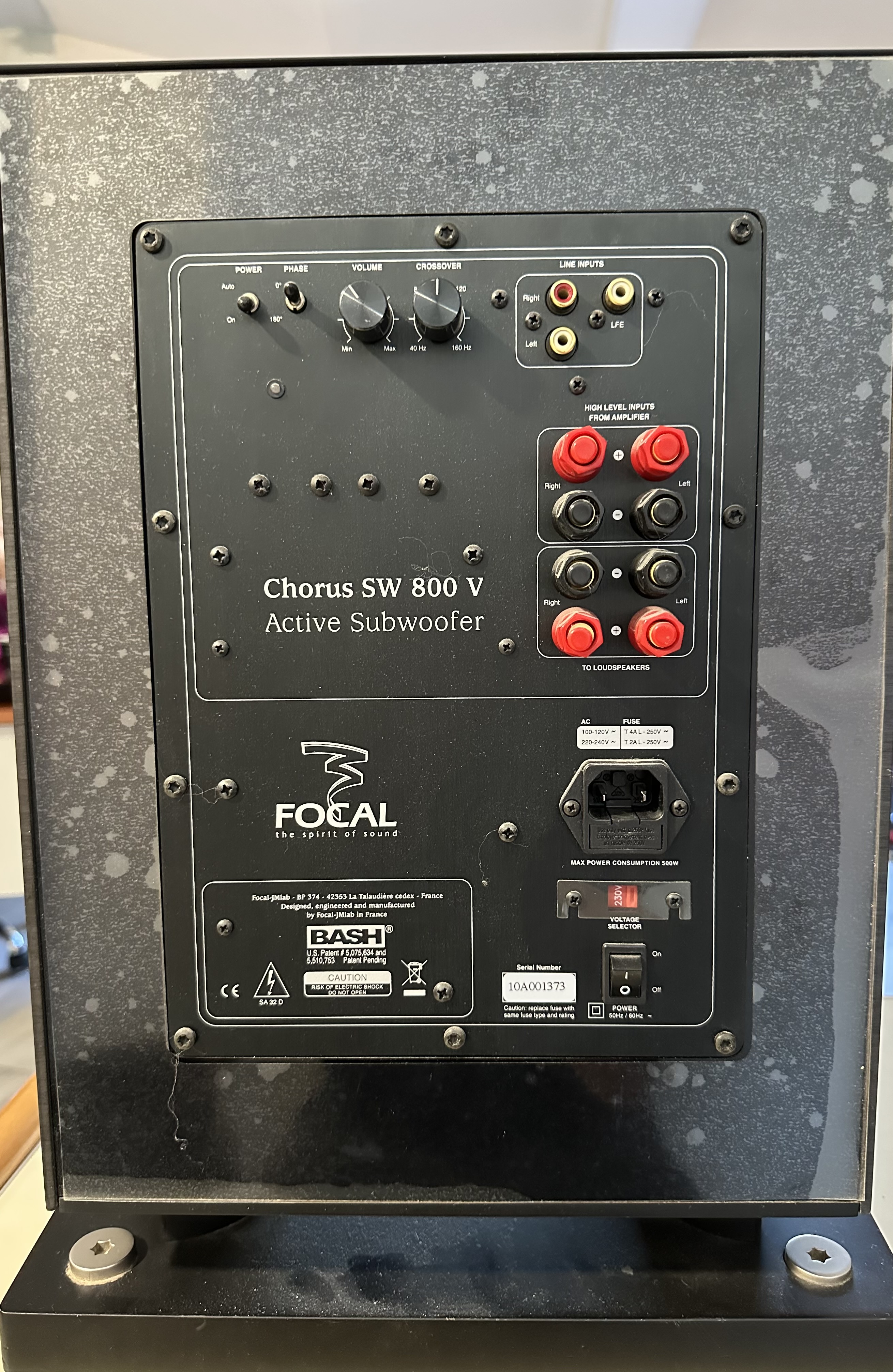 Πωλείται ενεργό subwoofer Focal Chorus SW 800 V σε εξαιρετική κατάσταση.