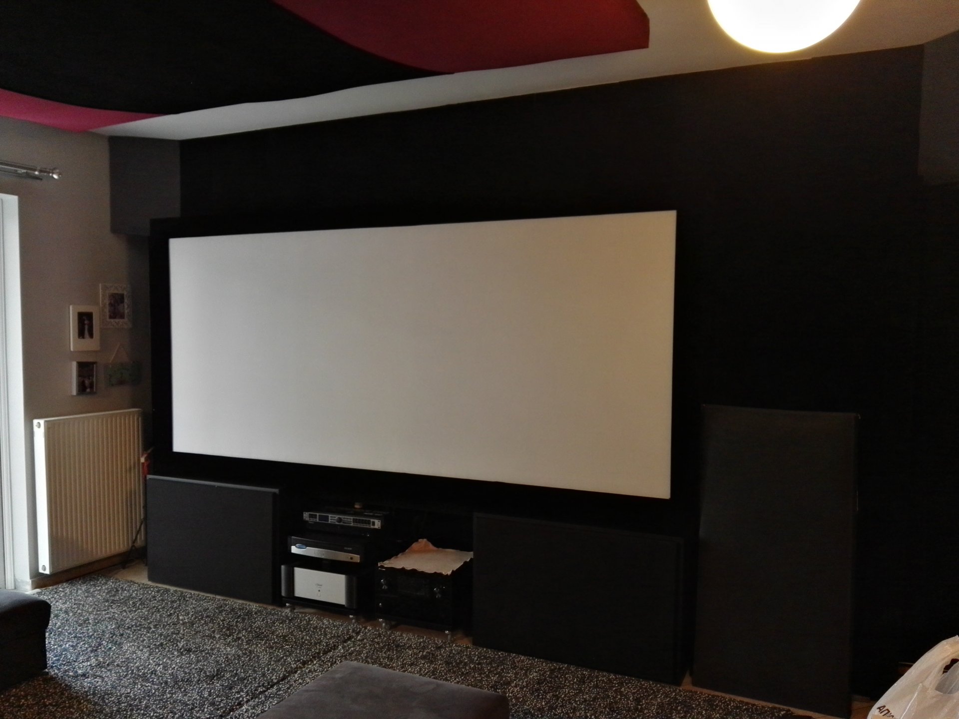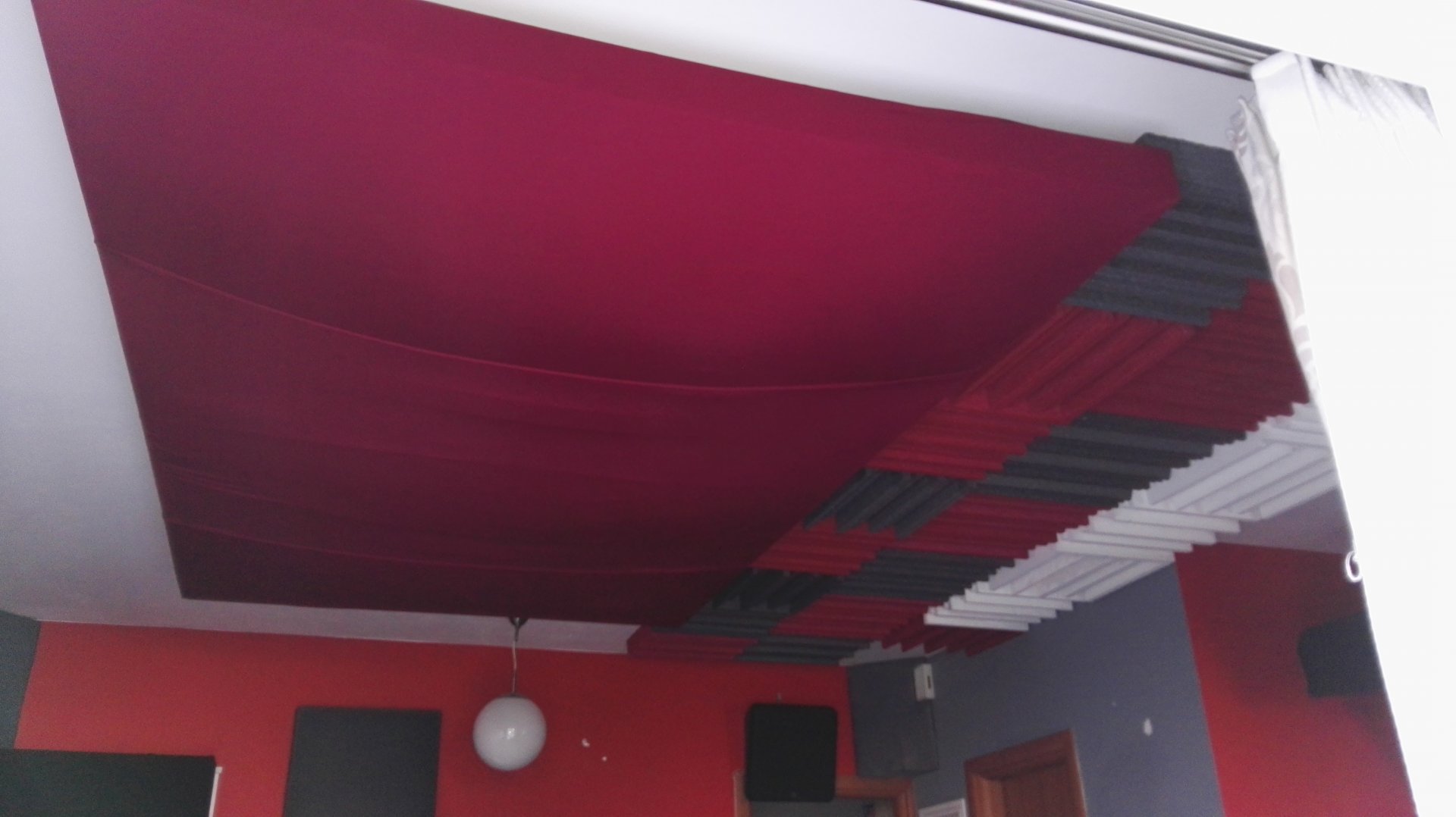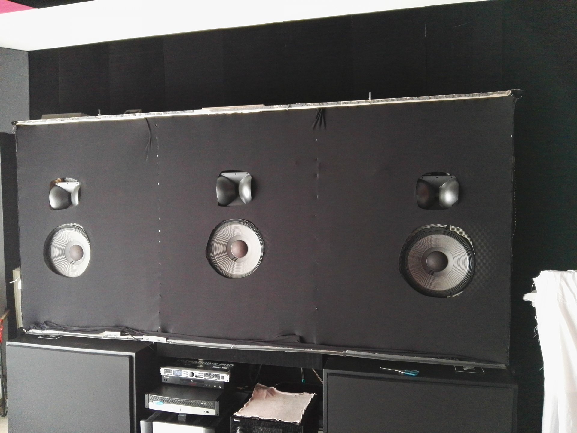 Οπότε βγάζω οθόνη την πάω πιο δεξιά και βάζω το δείγμα αριστερά. Έπαιζε στην εικόνα αλλά όχι και τοσο, βέβαια ηταν πρόχειρα βαλμένο χωρίς να είναι Καλά τεντωμένο, μικρό κομμάτι κτλ. Και λεω: οκ για να μπει θέλει πολύ καλή προεργασία απο πίσω απο την οθόνη και πιστεύω θα παίξει, αν οχι ίδια με την άλλη να είναι κοντά στην εικόνα, γιατί στον ήχο σίγουρα θα επεζε γιατί βλεπες τι εχει απο την άλλη μεριά του πανιου