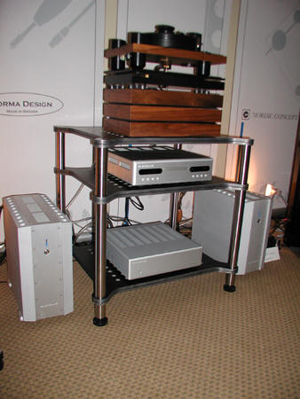 In the Blue Circle room was the BC208 Mono Hybrid amplifiers ($24,995 up to $26,800 pair depending on options and such).