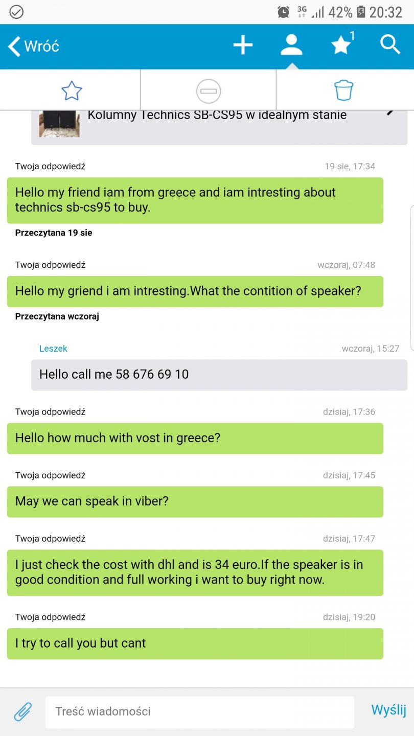 Αυτά είναι που να τα βρεις αυτά τα ηχεία τώρα προσπαθώ να συνεννοηθώ με τον πολωνό δεν μου έχει στείλει άλλο μήνυμά μου λέει πάρε με τηλέφωνο Εγώ κοίταξα με DHL και είναι 34 ευρώ βάσει του βάρους τα μεταφορικά για κάτσε να δούμε