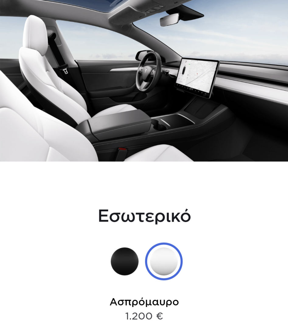 Όσο για την τιμή και την διαμόρφωση έχει γίνει πριν αρκετό καιρό, δεν έχω καούρα να μπαίνω στην Tesla κάθε μέρα. Ήταν κάτι ανάμεσα στα 52-53 χιλιάρικα, κόκκινο, με κάτι άλλα που δεν τα θυμάμαι, και το πρώτο σύστημα οδήγησης που έχει. Lane assist, παρκάρισμα τι είναι δεν θυμάμαι. Αυτό που θυμάμαι είναι ότι μόνο αυτό είχε 3500€. Προφανώς έχουν αλλάξει οι τιμές προς τα κάτω.