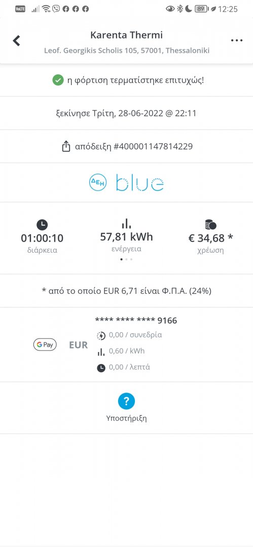 Σε 1 ώρα ολοκληρώθηκε το 100% της φόρτισής του, και χώρεσε 57,81 kWh