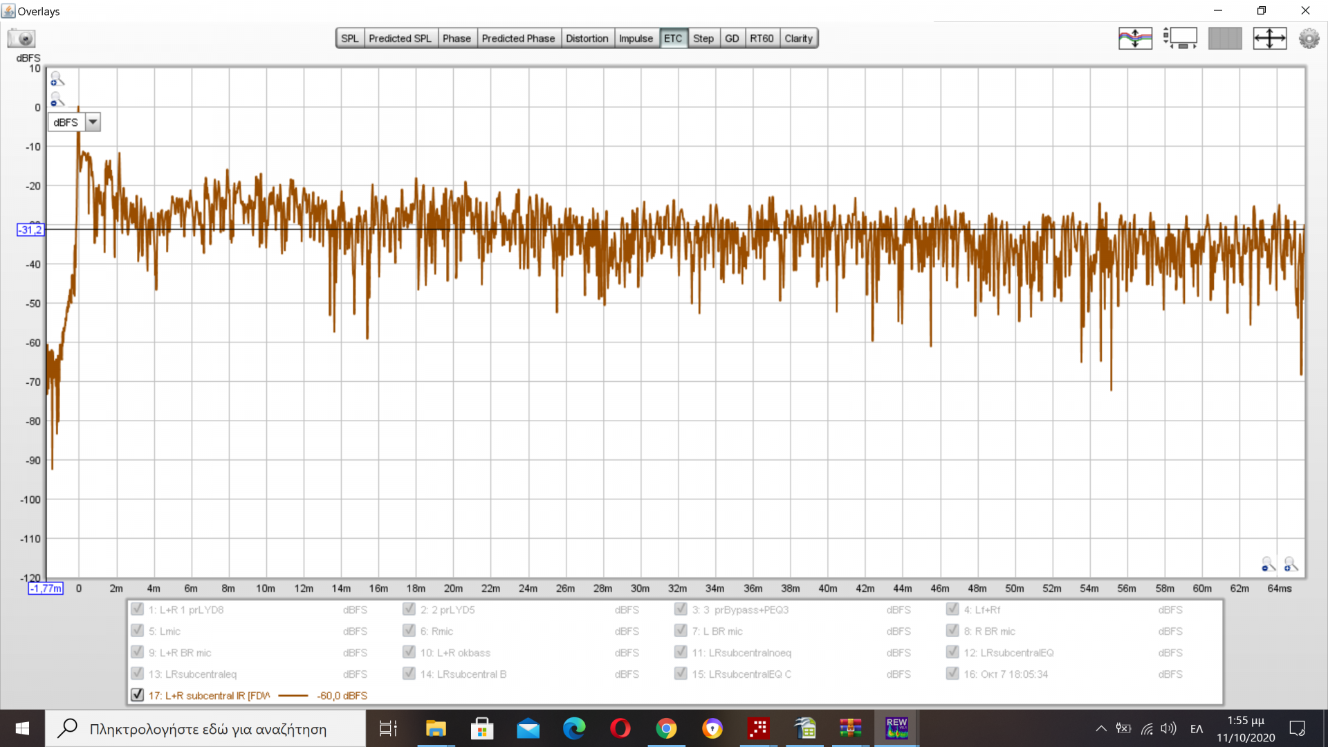 Και παράσταση ETC όπου κυριαρχούν αρχικά στο πεδίο του χρόνου οι ανακλαστικές συνιστώσες από δάπεδο και σώματα καρέκλας και sub: