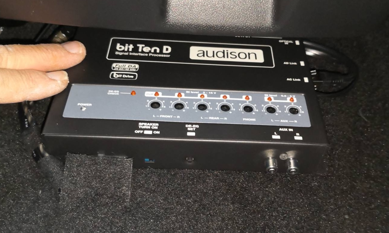 ενισχυτής Audison AV Quattro 2x125wrms 4Ω που παίζει ενεργά συνδυασμό Dynaudio Esotec MW172 woofers (20εκ) με tweeters MD102 (μπορεί να υπάρξει αναβάθμιση στα tweeters!), μέσω DSP Audison Bit Ten D και συνδεδεμένος ψηφιακά (AD/AC Link).