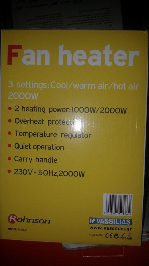 Πωλείται κλειστό στο κουτί του το αερόθερμο Rohnson Fan Heater.