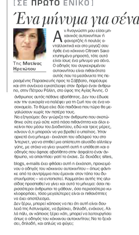 Το ελαβα και εγω σαν μαιλ σημερα το πρωι και το εστειλα οπου ηξερα.