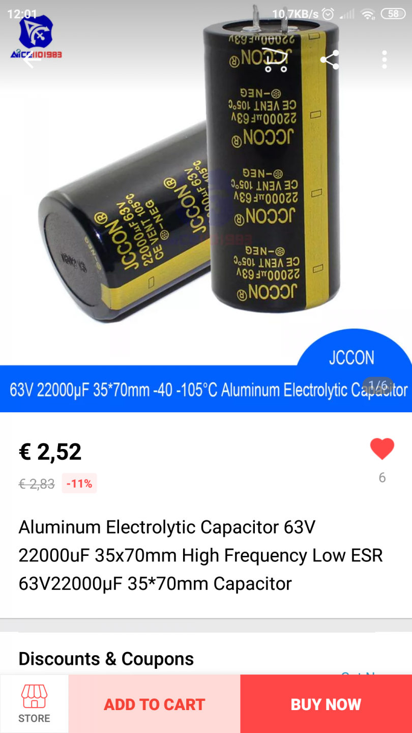 Όχι.Από 2 x 8200 mf 56v σε 2 x 12000 uf 63 v θα έχω πρωβλημα ?