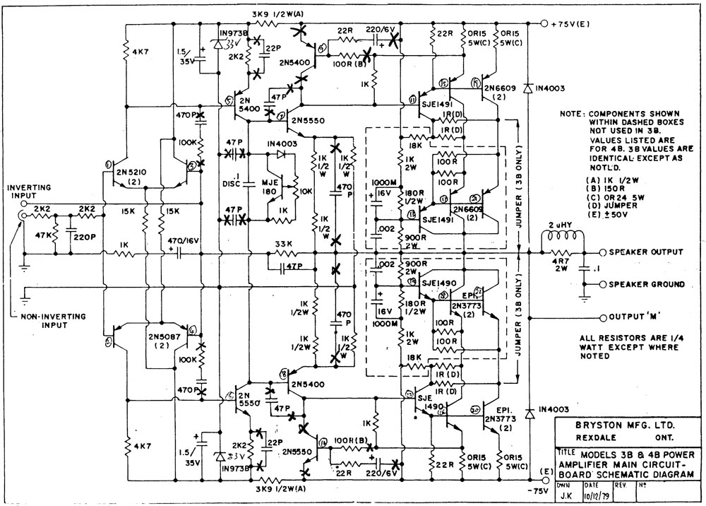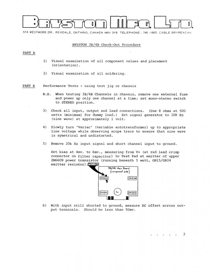 Λοιπόν, τα φώτα σας θα χρειαστώ γιατί ο ενισχυτής μου με έχει τρελάνει! Όπως βλέπετε, έχω έναν Bryston 3B ( απο τα πρώτα κομμάτια, του 79 ) του οποίου είχα κάψει το ένα κανάλι και πρόσφατα αποφάσισα να του αντικαταστήσω όλα τα υλικά στις πλακέτες. Αγόρασα νέα τρανζίστορς ( απο τα μικρά πάνω στις πλακέτες, μέχρι και τα εξόδου και τα οδηγά τους ), νέες αντιστάσεις τις οποίες έχω ταιριάξει στο 0,1% σε σχέση με τις τιμές του κατασκευαστή, νέους πυκνωτές, τα έβαλα όλα επάνω και εδώ ξεκινά το δράμα. Ξεκίνησα με το τρικ της λάμπας σε σειρά προκειμένου να περιορίσω το ρεύμα και να μη ξανακάψω κάτι και μετά απο πολύ κόπο κατάφερα να τον κάνω να μένει στο ρεύμα χωρίς να καίει ασφάλειες. Το πρόβλημα τώρα είναι η ρύθμιση του DC ηρεμίας καθώς οι τιμές του κατασκευαστή είναι 7-9mV και εμένα ξεκίνησε απο τα 110 και τον έσβησα ότι ακόμα και μετά τα -35mV συνέχιζε να πέφτει ( να αυξάνεται αρνητικά ). Σε κάποια στιγμή μου την έδωσε τόσο πολύ που γύρισα τρελά το trimmer για να δω αντιδράσεις, αλλά δεν άλλαξε κάτι. Για να το μετρήσω, έχω βάλει τους ακροδέκτες του πολύμετρου στις μπόρνες εξόδου με την επιλογή στο DC mV. Εκεί που μου δείχνει κάτι κοντινό στις τιμές του κατασκευαστή είναι όταν το βάζω σε AC mV, αλλά κανονικά δεν πρέπει να είναι DC? Επίσης, να κάνω σαφές ότι ακολουθώ τις οδηγίες του κατασκευαστή, δηλαδή βραχυκύκλωσα τον θετικό της εισόδου με τη γείωσή του και μετράω τα αποτελέσματα. Θα παραθέσω το σχέδιο του κυκλώματος για όποιον γνώστη μπορεί να βοηθήσει. Ευχαριστώ!