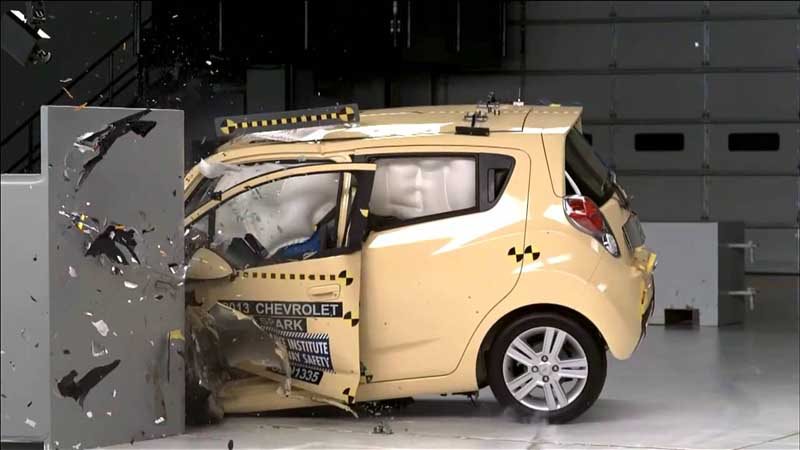 Η εν λόγω δοκιμασία προβλέπει τη σύγκρουση του μπροστινού τμήματος του αυτοκινήτου σε σταθερό εμπόδιο μικρής επιφάνειας με ταχύτητα 40 μιλίων ανά ώρα (64,4 χλμ./ώρα). Σε αυτή τη διαδικασία, λοιπόν, τα Mazda 2, KIA Rio, Toyota Yaris, Ford Fiesta Sedan, Mitsubishi Mirage (Spacestar), Nissan Versa, Toyota Prius c, Hyundai Accent, Fiat 500 και Honda Fit (Jazz), απέτυχαν -και μάλιστα παταγωδώς- να διαφυλάξουν τη σωματική ακεραιότητα του οδηγού. Μοναδική εξαίρεση στον παραπάνω κανόνα αποτέλεσε το Chevrolet Spark, η επίδοση του οποίου χαρακτηριστικέ ως αποδεκτή.