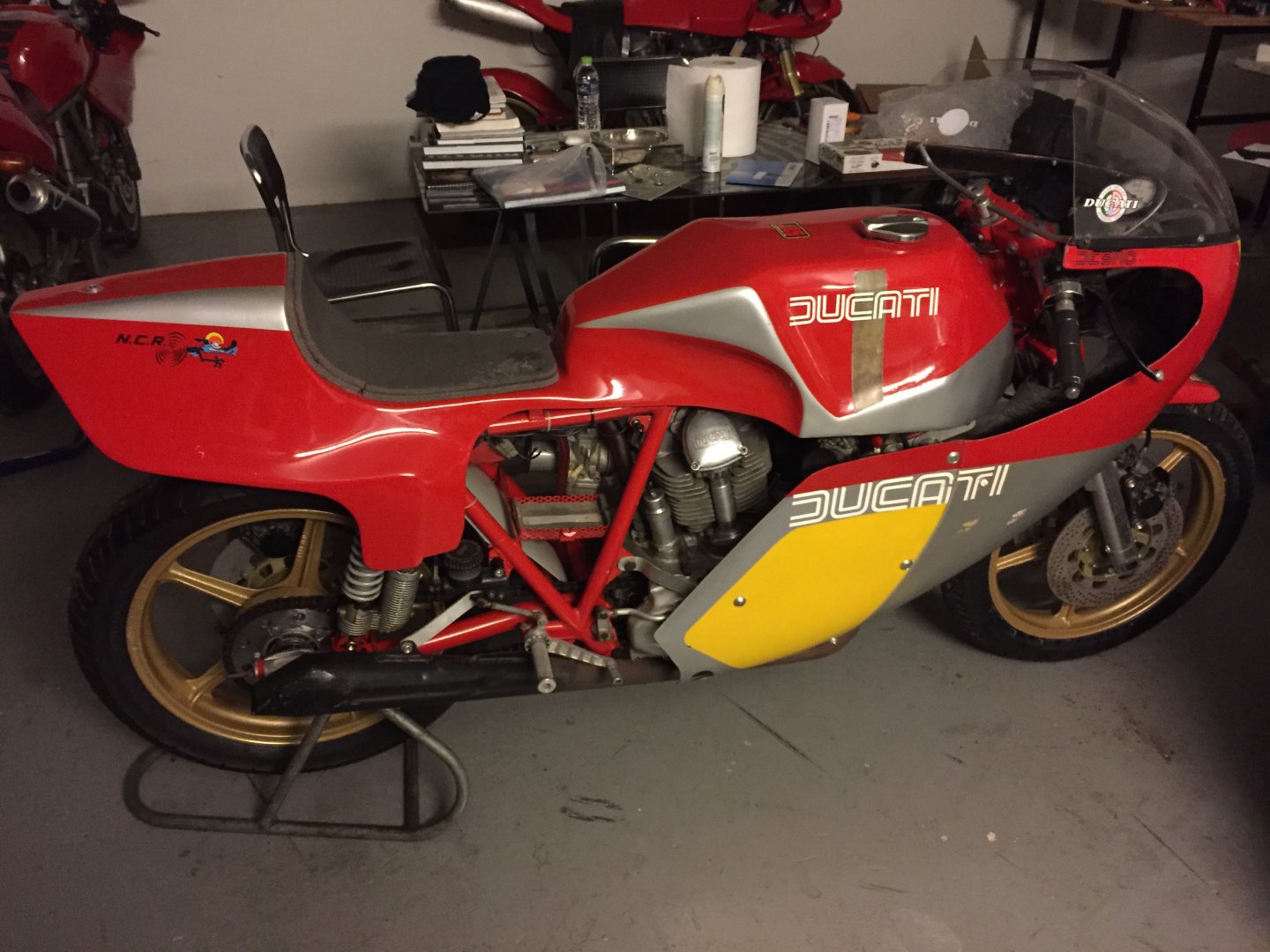 Ξεκιναω το φωτογραφικό υλικό με κάτι σπάνιο,δεν ανήκει στον bro αλλά ήταν στο γκαράζ του για μεγάλο διάστημα.Αυθεντικη Ducati NCR του 78,έχει τρέξει σε παγκόσμιο και την έφερε στην Ελλάδα ο Ηλίας Καμμενος,πατέρας του ψεκασμένου και τότε αντιπροσωπος της Ducati στην Ελλάδα,για να τρέξει στο Πανελληνιο Πρωτάθλημα Ταχύτητας.