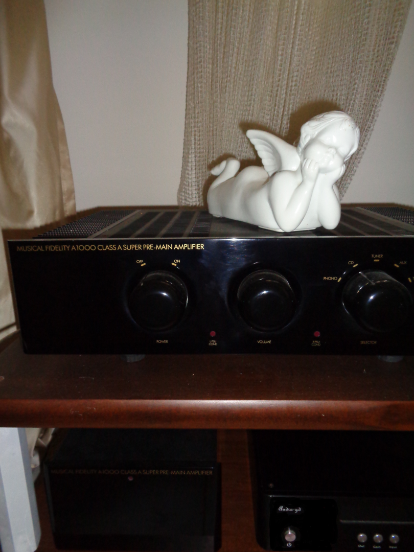 Κάτω αριστερά στο πλάνο το εξωτερικό τροφοδοτικό του Α1000 και κάτω δεξιά φαίνεται το ladder DAC από την audio-gd...(Rubber duck-ladder DAC,κάνει και για...γλωσσοδέτης).