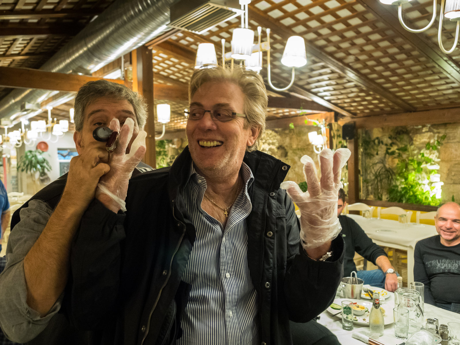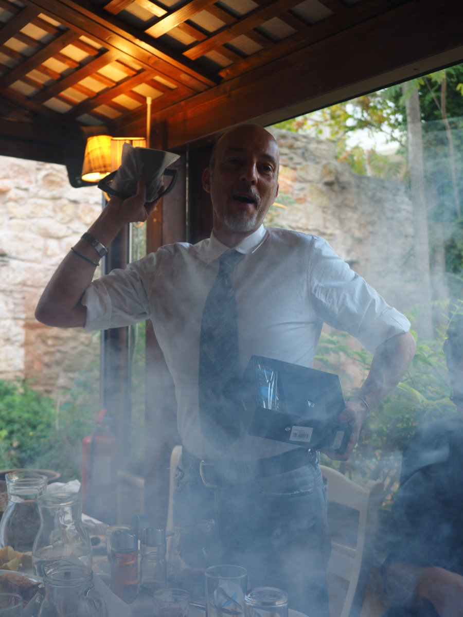 Ti ατμος....εδω ητανε οι καμιναδες της Μοτορ οιλ μαζεμενες εκει μεσα...ρε σεις εχετε ξεφυγει με δαυτα....αντε να μπεις σε κανα μαγαζι με καμια κοσαρια τετοιες τζιμινιερες....δε θα βλεπει ο ενας τον αλλον εκει μεσα.....ε ρε τρελλαααααααααα- περάσαμε όμορφα , καλή παρέα , φαγητά , ποτά , ατμός-φαιρα . . . βέβαια κάποια στιγμή είπα να το γυρίσουμε στα καλωδια αλλά τελικά φοβήθηκα μην με βρούν απαγχονισμένο με κανά nordost στο λαιμό ,![]()