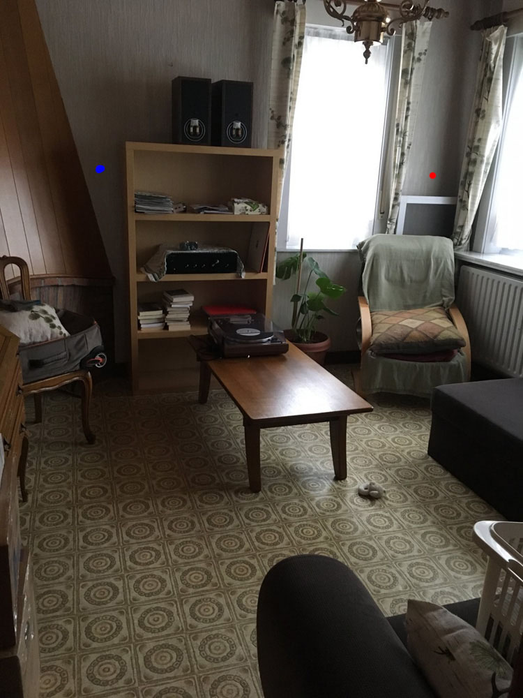 Ο χώρος είναι πάρα πολύ περιορισμένος. Στη θέση σου θα τοποθετούσα τα ηχεία σε βάσεις τοίχου με δυνατότητα tilt - swivel, το δεξί στην κόκκινη θέση, σε ύψος ανάλογο ώστε το γούφετ να είναι 10 εκατ. πάνω από το χείλος της πλάτης του καθίσματος, και το άλλο στο ίδιο ύψος, σε μια από τις δύο εναλλακτικές μπλε θέσεις, ώστε να αξιοποιείται ο καναπές ως έχει και να μην εμποδίζεται η θέρμανση του σώματος.