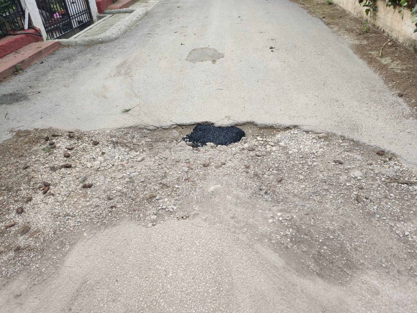 Η κουκίδα καινούριας ασφάλτου, όλα τα λεφτά!!Στην πρωινή μου άσκηση συνάντησα το παρακάτω σκηνικό. Έριξαν γύρω στα 2 κιλά άσφαλτο για να καλύψουν το πιο μεγάλο "σκαλοπάτι" του λάκκου. Ούτε χρυσή να ήταν...