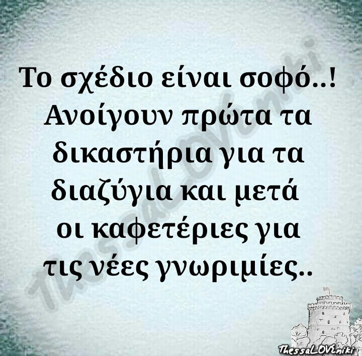 Μην στο χαλάσω το χιούμορ, αλλά για όσους βιάζονται, παρέμεναν ανοικτά και τα συμβολαιογραφεία και τα δικηγορικά γραφεία για την έκδοση συναινετικών διαζυγίων (απλώς ήθελε και ένα έξτρα πληρεξούσιο καθώς για συναινετικό απαιτείται και ιδιωτικό συμφωνητικό το οποίο, ελλείψει υπογραφής από πληρεξούσιο δικηγόρο, θα πρέπει να επικυρώνεται στο Ειρηνοδικείο). Αλλιώς τα κατ' αντιδικία διαζύγια ούτως ή άλλως παίρνουν αρκετό καιρό. Οι περισσότεροι πλέον προτιμούν τον συμβολαιογράφο για συναινετικό. Μπαμ-μπαμ. Στο μήνα πάνω, χωρίς πλάκα, έχεις πάει και ληξιαρχείο.