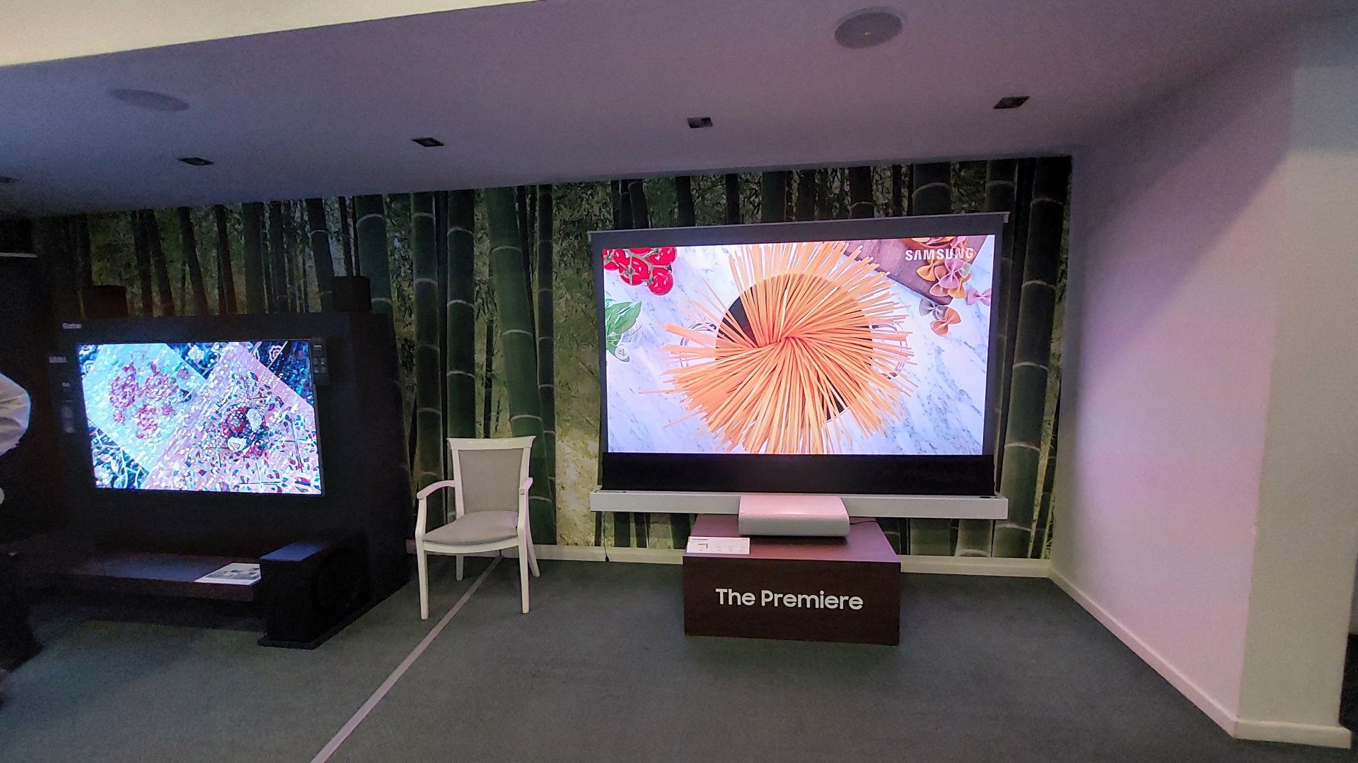 Ο Samsung The Premiere ήταν μια ευχάριστη έκπληξη. Και εγώ και η σύζυγός πάθαμε πλάκα. Δεν περίμενα τέτοια εικόνα με τόσο φως στο δωμάτιο. Αριστερά είναι μια QNED νομίζω και δεξιά ο The Premiere σε οθόνη VividStorm στις 110" σύμφωνα με τον άνθρωπο της εταιρίας. Νομίζω πως είναι μικρότερη. Προσωπικά, στις φωτιστικές συνθήκες που έχουμε στο σαλόνι ο Samsung μπαίνει άνετα για daily use αντί τηλεόρασης. Οι φωτογραφίες είναι από κινητό στο auto με manual peak brightness στον Samsung.