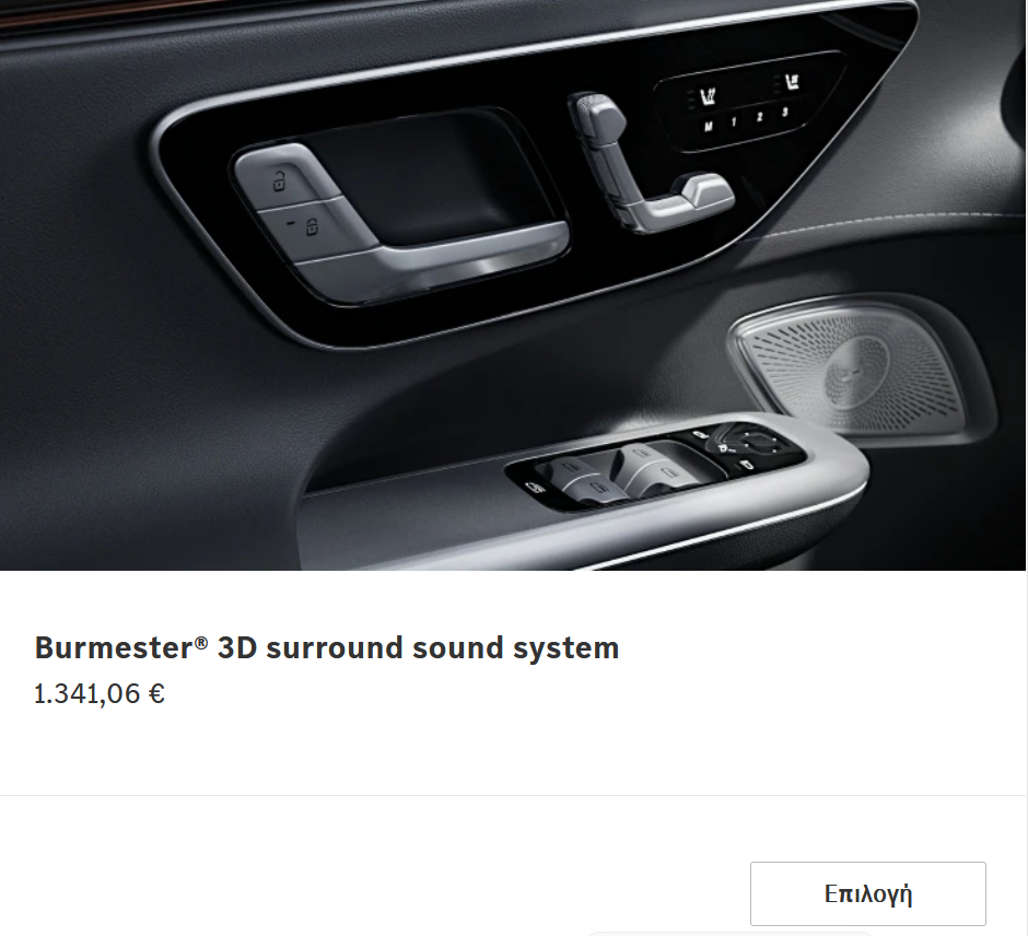 Όχι διπλά, τριπλά έτσι όπως το βλέπω!! Μόνο το ηχοσύστημα έχει 6.000 εξτρά!!!! Βάλε και άλλα 6 για τα καθίσματα, 4 για τον εσωτερικό φωτισμό, 2 για Head up display, έφτασες το Tesla!!!! :errwhat: Το έχει ξεφτιλίσει η Mercedes, αδειο το παίρνεις με τιμή καταλόγου και προσθέτεις μηδενικά