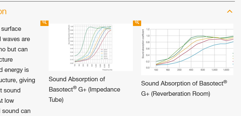 Γράφει " (Reverberation Room) " για το δεξί, και " (Impedance Tube) " για το αριστερό, που είναι οι ονομασίες των μεθόδων μέτρησης κατά ISO 354 και ISO 10354 αντίστοιχα, λέμε