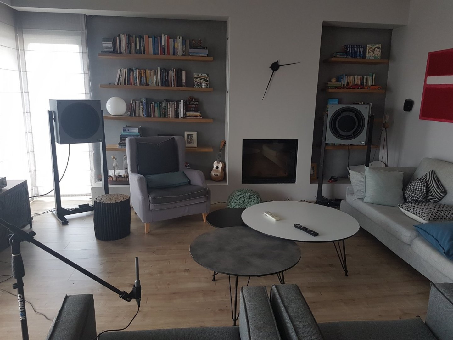 Προς το παρόν δεν έχουν κλίση προς τα κάτω. Να σου πω την αλήθεια κι εγώ περίμενα να τους δώσουμε μια μικρή κλίση ώστε να σε κοιτάνε ευθεία, αλλά ο Ζαπ είπε δεν χρειάζεται οπότε προφανώς δεν το αμφισβήτησα. Υπενθυμίζω βέβαια πως η απόσταση ακρόασης είναι μεγάλη (άρα η γωνία στην οποία είσαι εκτός άξονα μικρή), ότι η off axis απόκριση είναι προφανώς καλή και ότι γενικώς ακούμε μουσική όχι μόνο καθισμένοι στις πολυθρόνες αλλά και στην κουζίνα, κυκλοφορώντας κλπ. Επίσης κλίση προς τα κάτω μάλλον θα έκανε χειρότερη την κατάσταση με τα τραπεζάκια. Άρα εν τέλει νομίζω βρίσκω σωστή την απόφαση.