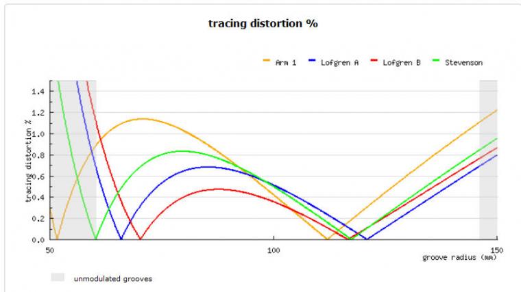 Το πρόβλημα είναι με τη γωνία που έχει ο S βραχίονας. Είναι 19 μοίρες. Αν βάλεις αυτό το νούμερο στους υπολογισμούς που παραθέτει ο φίλος από το lencoheaven τότε το σφάλμα ανάγνωσης πάει στις 8.2 μοίρες, η μέγιστη παραμόρφωση στο 5.5% και η RMS κοντά στο 3%...ούτε που φαίνεται στο διάγραμμα η καμπύλη που προκύπτει.
