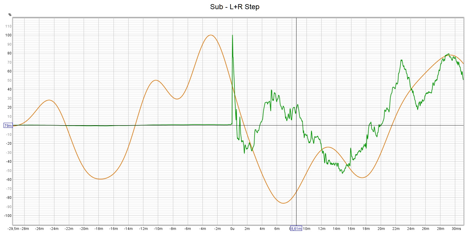 Θα προτιμούσα spectrogram με λήψη στην περιοχή γύρω από την κεντρική θέση ακρόασης.Τουλάχιστον για τη ρύθμιση της φάσης όμως, στη συχνότητα του σημείου κρος, προτείνω η μέτρηση του σημείου φάσης με την μέγιστη ακύρωση, να γίνεται με το μικρόφωνο πολύ κοντά και ανάμεσα στα 2 εμπλεκόμενα μεγάφωνα, δηλαδή στο γουφερ του δορυφόρου και στο γουφερ του σαμπ, εφόσον το σαμπ βρίσκεται πρακτικά δίπλα σε κάποιον δορυφόρο (ως συνήθως).