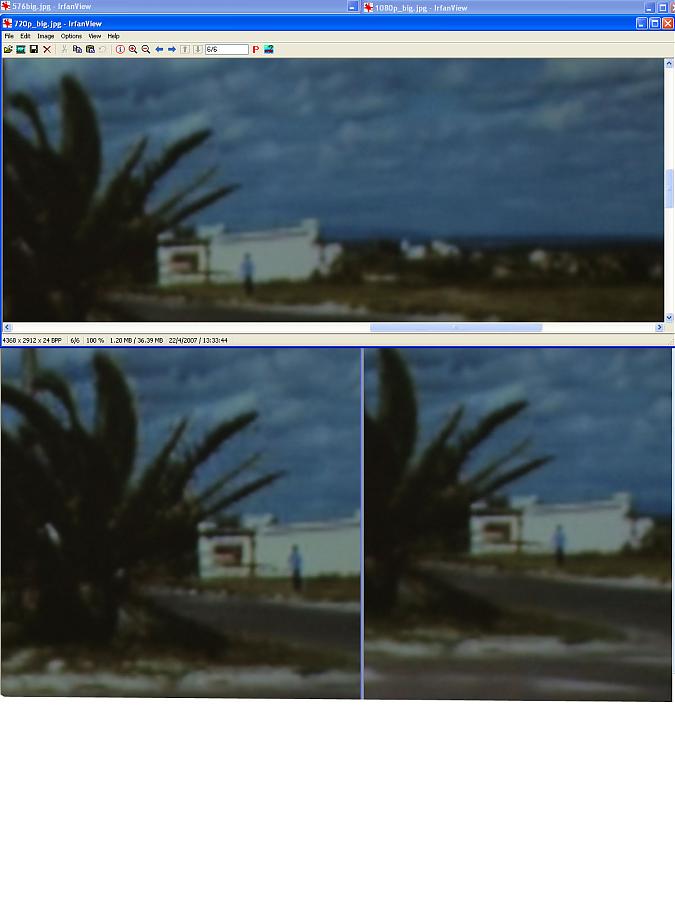 Δοκιμή στη δοκιμή, stop και αλλαγή ανάλυσης, προσπαθούσα να καταλάβω διαφορά. Το scaler του προβολέα πολύ καλό, όταν του δοθεί σήμα μέσω hdmi, αλλά το Oppo το ξεπερνά. Ιδού ένα παράδειγμα: Χάλια τα πιξελιάσματα ανάμεσα στις φυλλωσιές του θάμνου στα 576... Στα 720p και 1080p το Oppo καταφέρνει να τα εξαφανίσει. (Ταινία: Ο Σχιζοφρενής δολοφόνος με το πριόνι: Η Αρχή) Αριστερά 576, δεξιά 1080p, επάνω 720p. Προσωπικά προτίμησα τα 1080p και το έχω αφήσει πλέον κλειδωμένο εκεί.