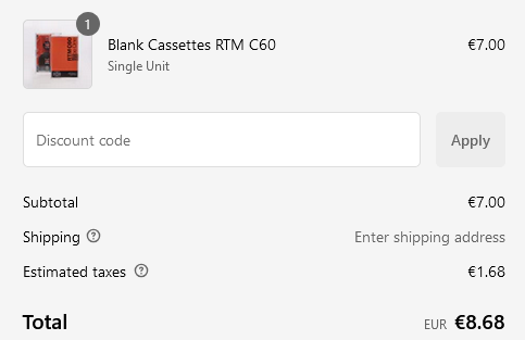 Λογική τιμή σχεδόν 9€ (προ ταχυδρομικών) για τύπου I άγραφη;H Γαλλική RTM (πρώην RMGi) πλέον κατασκευάζει πολύ καλής ποιότητας κασέτες τύπου C60 και C90 σε λογικές τιμές. Περισσότερα εδώ