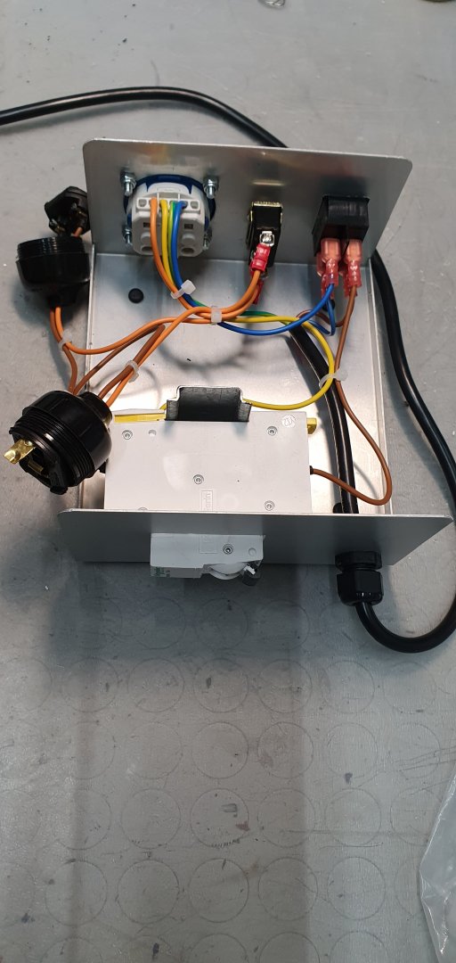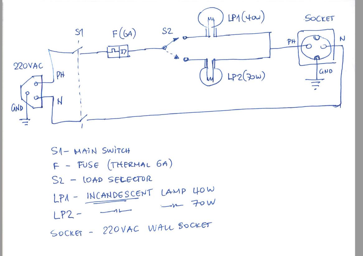 Το σχέδιο-κύκλωμα απλό, σε σειρά με την παροχή, μια λάμπα πυράκτωσης γύρω στα 70 watts. Η υλοποίηση έγινε με πιο επαγγελματικό τρόπο, προστέθηκε η επιλογή φορτίου (δηλαδή σε σειρά αντίστασης), ανάλογα με το είδος της συσκευής υπό προστασία (μεγάλης ή μικρής κατανάλωσης) και μπήκε σε ένα ωραίο κουτί με γενικό διακόπτη και ασφάλεια. Τα περισσότερα υλικά τα είχα ήδη στο εργαστήριο. Αλλά και ότι χρειάστηκε να το αγοράσω ήταν πολύ φτηνό.