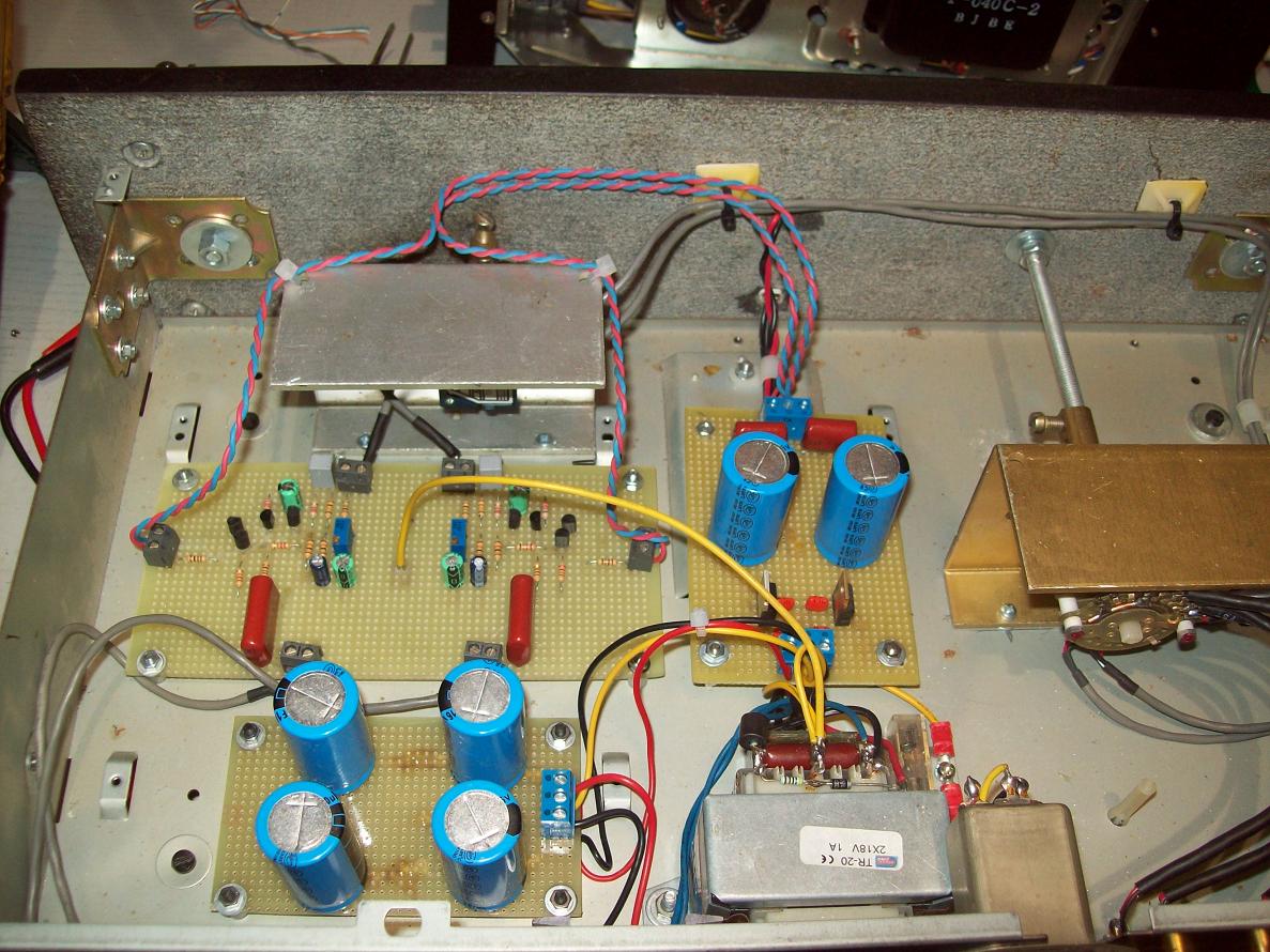 το κουτι ειναι χωρισμενο σε δυο τμηματα το ενα ειναι η τροφοδοσια και το αλλο ο προενσχυτης ...το τροφοδοτικο ειναι C-R-C φουλ σταθεροποιημενο και φιλτραρισμενο οσοσ γινεται καλυτερα ...