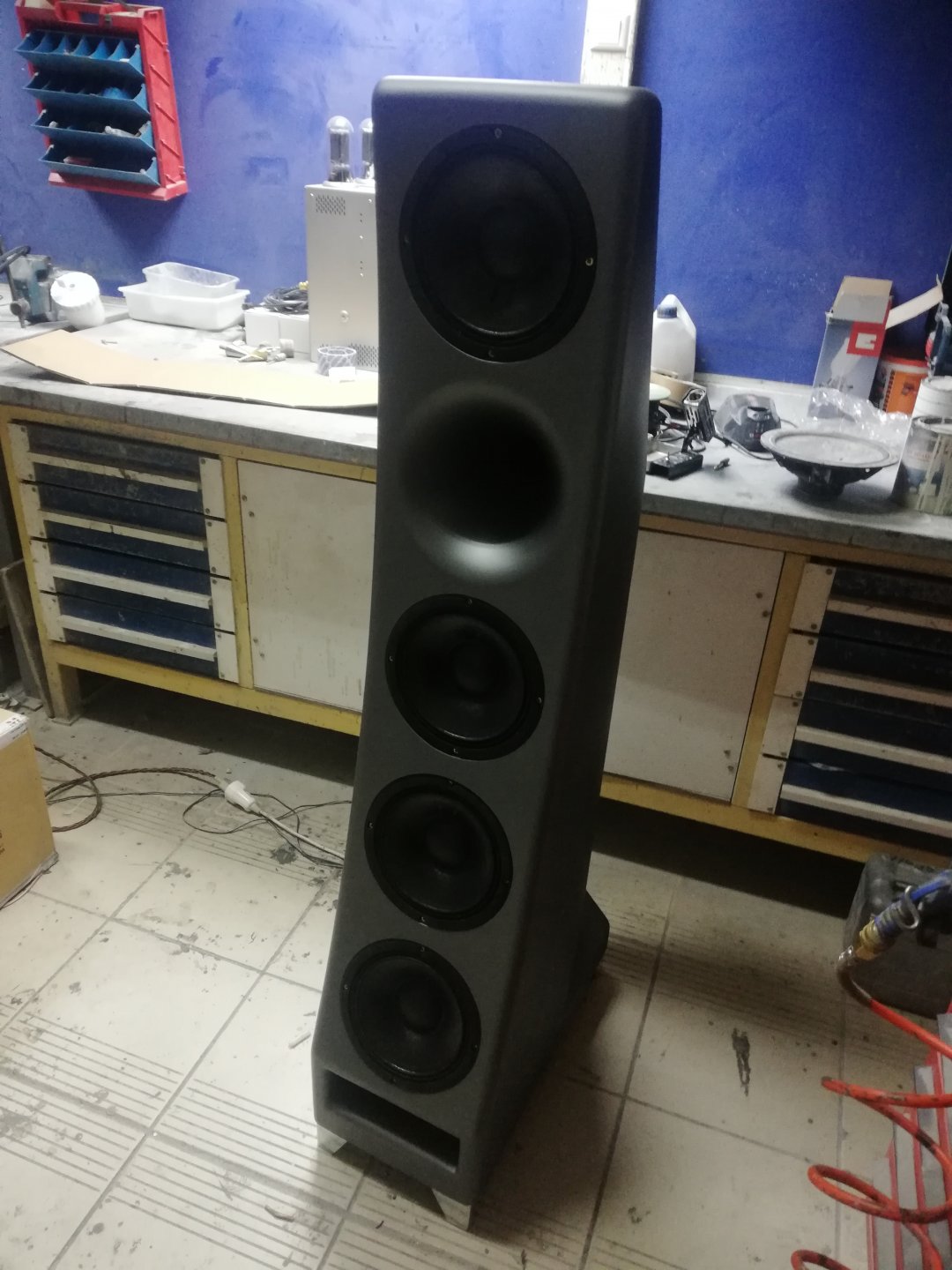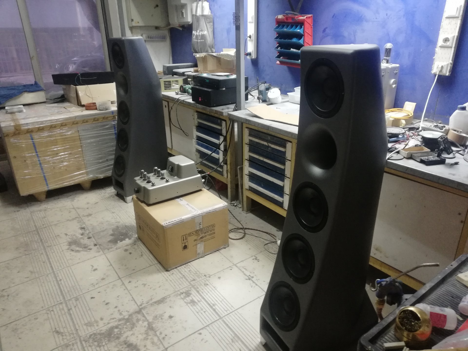Εχτές το απόγευμα βρέθηκα εντελώς σκόπιμα στο εργαστήριο της Sonus Aeterna του Κώστα Κων.νου μαζί με φίλους....και πραγματικά άκουσα έναν διαφορετικό ήχο που αξίζει να σας μεταφέρω όσο είναι δυνατόν με λόγια κ με κάποιες φωτογραφίες και video.Τα καινούργια ηχεία της σειράς ...aeterna.Δύο δρόμων με κόρνα μιάς ίντσας και 4 μιντγούφερ σε φόρτιση μπας ρεφλεξ .Καμπίνα φτιαγμένη από συνθετικά υλικά αδρανής ακόμα και σε μεγάλες στάθμες με την αφή του χεριού δεν νιώθεις κανένα είδος κραδασμού .Ευαισθησία 99 ντεσιμπέλ.Το ηχείο οδήγησε με τρομακτική ευκολία και ηχητικές αρετές ένας νέος ''τσαμπουκαλεμένος'' λαμπάτος ενισχυτής πους πουλ φορώντας 6L6,λίγων μόλις βατ αλλά όπως αποδείχτηκε υπεραρκετών για να .....''ξεφύγουμε ''μέσα απο αρμονικές ,δυναμικά περάσματα και μια ανεμπόδιστη συνεχή ροή αναλυτικής καθόλου κουραστικής και ευχάριστης ,αληθινής μουσικής απόλαυσης με μία εικόνα τεράστια με ευκρίνεια και διάυγεια ρυθμό και που κράτησε περίπου 2 ώρες με αξιοζήλευτα αποτελέσματα για τους ευτυχείς παρευρισκόμενους και τον ευτυχέστερο μελλόντικό κάτοχο.