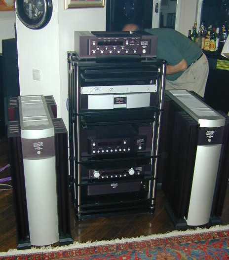 * CD player: Conrad Johnson DV-2b, preamplifier: Conrad Johnson PV12 with tube phono stage, amplifiers: Conrad Johnson Premier 12 mono blocks, speakers: Martin Logan Request