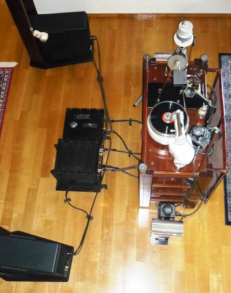 * Genesis 300 - Rowland 8T amplifier - 'Consummate' line preamp. (with 450W ultra fast p.su.) - DACT CT100 phono module (custom silver wired with 550W dual ultra fast p.su.) - AAS Gabriel turntable mod. (motor capstan flywheel-like designed, new flat belt etc.) - insider reference wood on Souther linear arm mod. (extra weight, spring loaded etc.) - Wadia 15 Decoding computer clock linked with Wadia 8 transport.