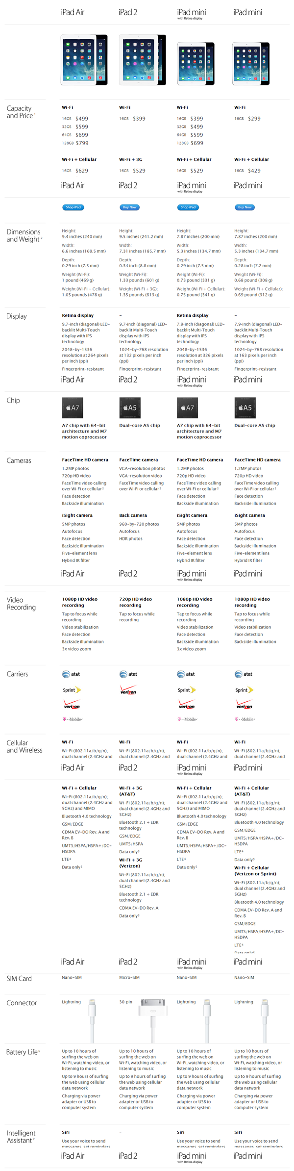 Η Apple σταματάει την παραγωγή του iPad 4 και στην αγορά παραμένουν τα iPad 2 και iPad mini 1 σε χαμηλότερες τιμές. Ουσιαστικά προσφέρει 8" και 10" ταμπλέτες με απλή και Retina οθόνη.