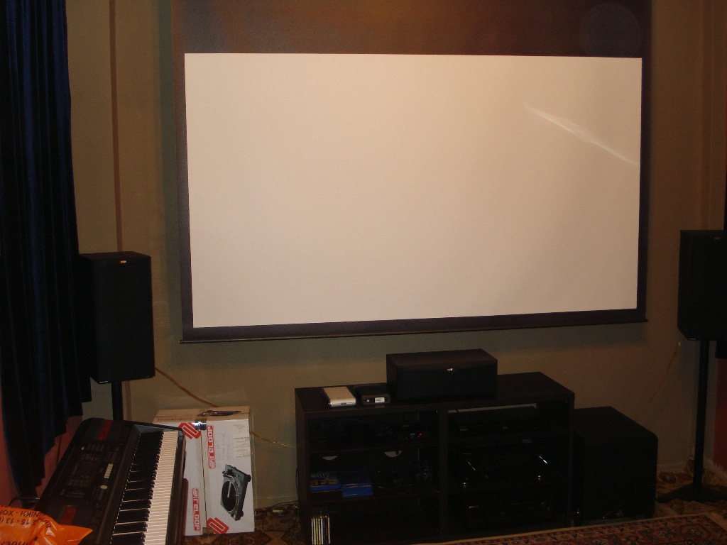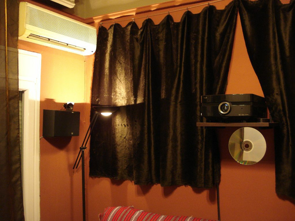 Δεξιά και αριστερά από την οθόνη κρέμασα από ένα πανί βελούδο πολύ σκούρο μπλε για τις αντανακλάσεις και κάνουν πολύ καλή δουλειά.