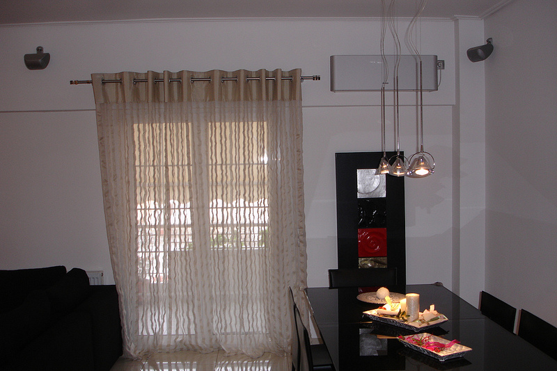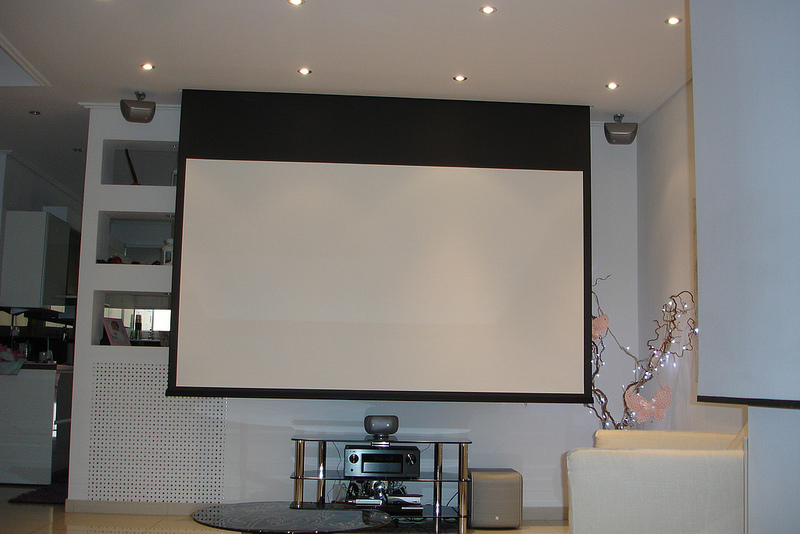 Η μελέτη τοποθέτησης έγινε με κριτήριο του να υπάρχει ένα πλήρες σύστημα και ταυτόχρονα να είναι όσο το δυνατόν αόρατο και λειτουργικό για αυτό και η ηλεκτρική οθόνη προβολής 120'' της Grand View τοποθετήθηκε εσωτερικά της γυψοσανίδας και όλες οι καλωδιώσεις των ηχείων περιμετρικά στους τοίχους σε διάταξη 5.1 για την προβολή ταινιών και όταν θα υπήρχε ανάγκη για μουσική και θα θέλαμε να γεμίσει και το υπόλοιπο σαλόνι ενεργοποίηση μιας δεύτερης ζώνης με την προσθήκη δυο επιπλέον ηχείων.