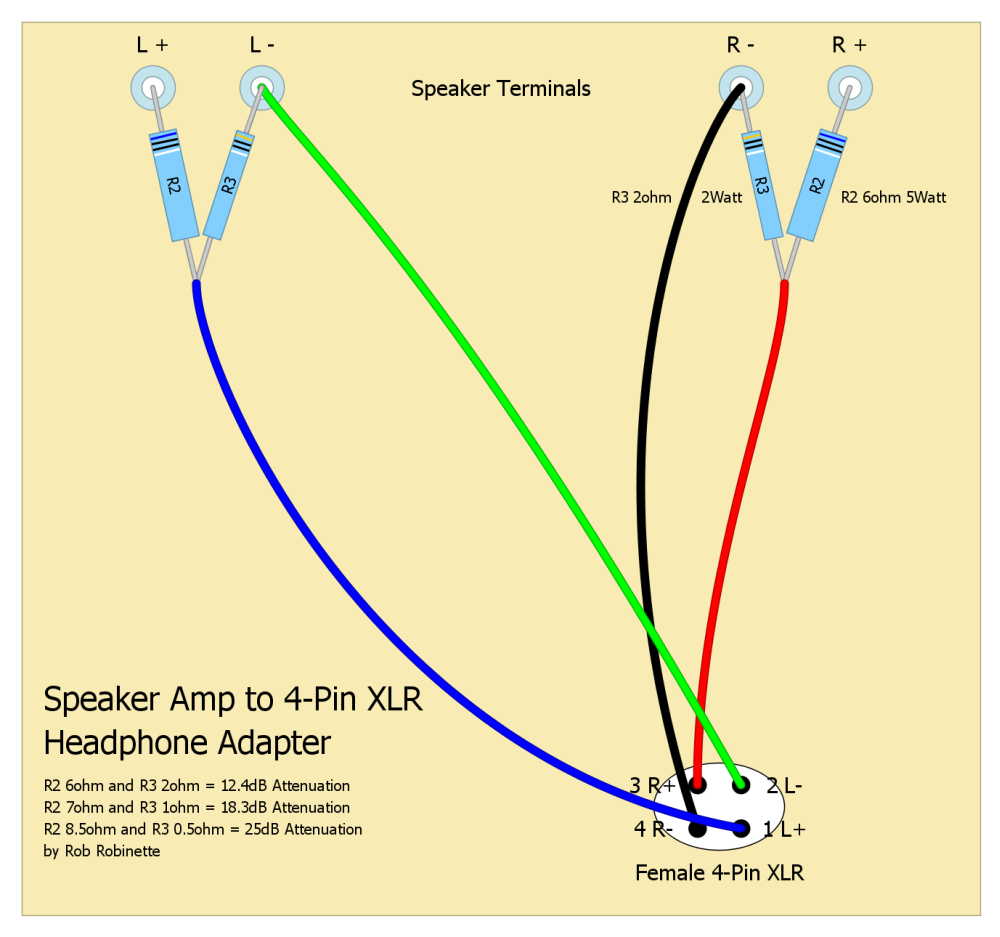 Επίσης μια σκέτη αντίσταση εν σειρά δεν θα προσφέρει κάτι σε 300 Ωμ ακουστικά. Χρειάζεται διαιρέτης τάσης, δικτύωμα αντιστάσεων δηλαδή, για να ρίξει σε ικανοποιητικά επίπεδα την στάθμη και ταυτόχρονα να βλέπει σχετικά χαμηλή αντίσταση η έξοδος του ενισχυτή.