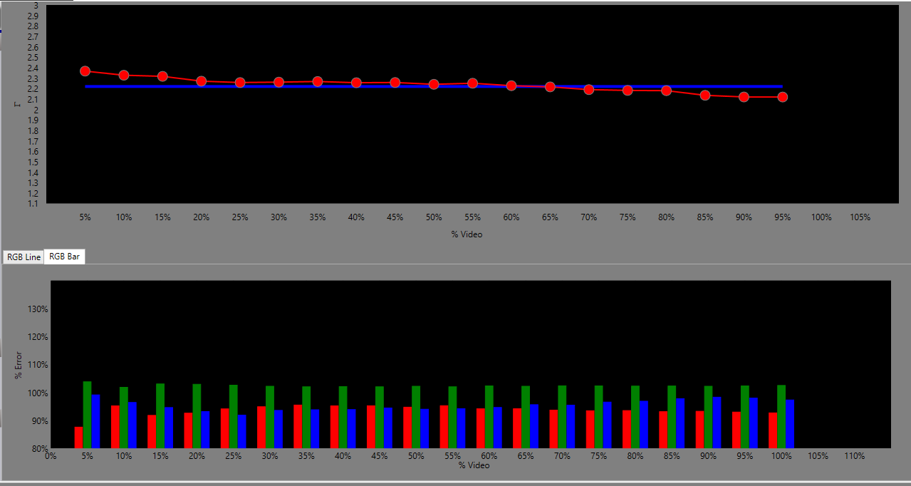 Η Panasonic φώναζε από μακριά την ηλικία της με τους σπινθηρισμούς της τεχνολογίας στα pixel αλλά με ένα gamma φωτεινό που ναι μεν έδινε μια μικρή λεπτομέρεια στα χαμηλά αλλά δίχως contrast. Χρωματικά το πώς πήγε μπορείτε να το δείτε στα παρακάτω διαγράμματα.