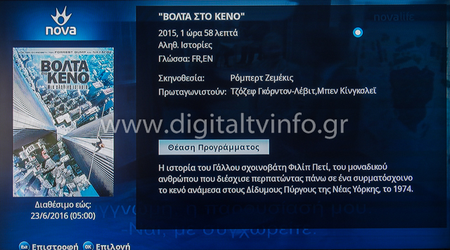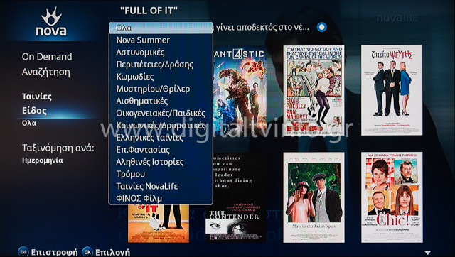 Η νέα υπηρεσία δεν είναι ακόμη διαθέσιμη για το ευρύ κοινό, για αυτό μην ψάχνετε άδικα στους δέκτες σας για αναβαθμίσεις και επιλογές που θα δείτε στις φωτογραφίες που ακολουθούν. Για τη χρήση της υπηρεσίας VOD, απαιτείται η σύνδεση του δέκτη σας με internet οποιουδήποτε παρόχου. Όπως έχουμε γράψει εδώ και καιρό, με τη νέα αυτή On Demand υπηρεσία, οι συνδρομητές θα αποκτούν τη δυνατότητα πρόσβασης σε όλο το library δικαιωμάτων που διαθέτει η Nova, ώστε να μπορούν ανά πάσα στιγμή να επιλέξουν την ταινία, σειρά, ντοκιμαντέρ της αρεσκείας τους μέσα από εκατοντάδες επιλογών που συνεχώς θα ανανεώνονται και να τα παρακολουθούν στην τηλεόρασή τους! Σημαντικό να αναφέρουμε πως για όλα αυτά που θα δείτε δεν θα υπάρχει χρέωση!