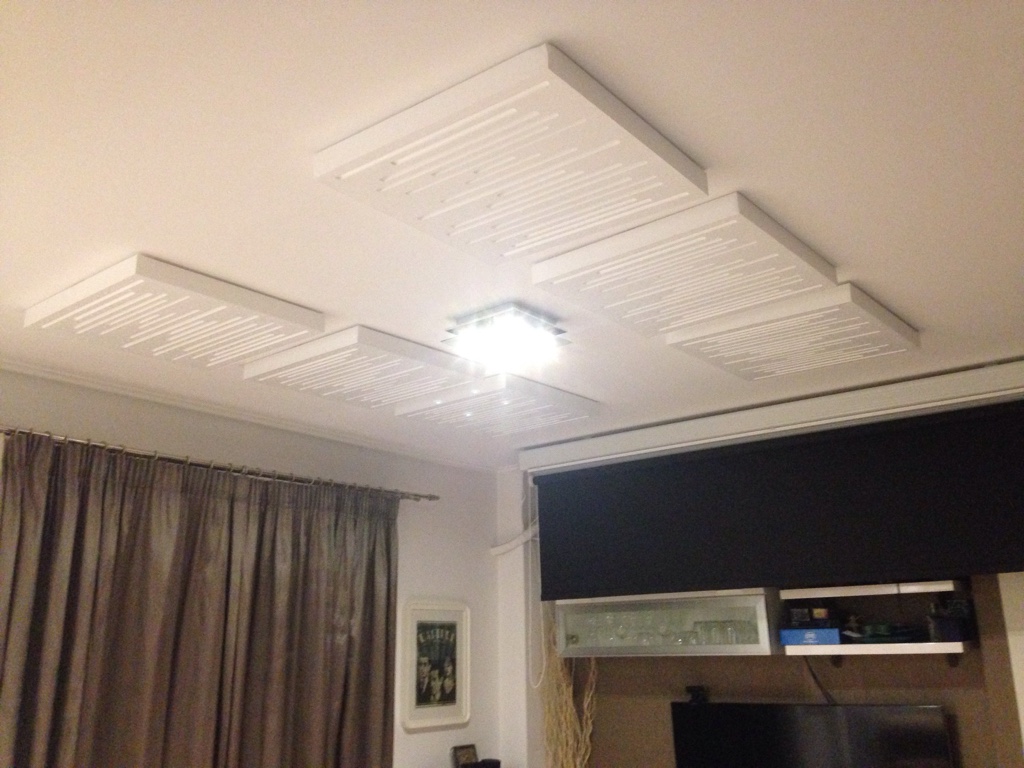 Ωχ...Προβλέπεται τρελό ξύλο αύριο το πρωί. Έχω πάρει απορρόφηση και διάχυση και πριν τα βάλω ήθελα να δω πως φαίνονται 6 τεμάχια στο ταβάνι... Αυτά είναι μόνο η διάχυση, μιας και τα έβαλα όλα με βελκρο προσωρινά να δω πως φαίνονται.